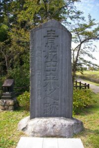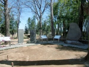 栄一の雅号である「青淵」の由来となった淵の跡に建てられた碑。青淵公園内にある。