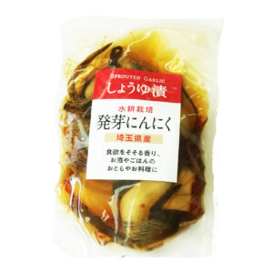 今回使用するのは深谷で作られている発芽にんにくの漬物。深谷市ふるさと納税商品としても取り上げられているにんにくの根っこから、茎までをまるごと漬け込んだ滋養強壮たっぷりにんにくの醤油漬け。