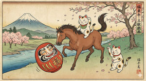 来年の干支は午(うま)。十二支の7番目で、馬を象徴します。馬は「成功」「前進」「行動力」の象徴とされ、運気が上昇し、物事がうまくいく縁起の良い動物とされています。また、馬は人を運んだり、農耕を助けたりと古くから人々の生活に深く関わってきたことから、「活力」「健康」「豊かさ」といった意味合いも持ちます。
