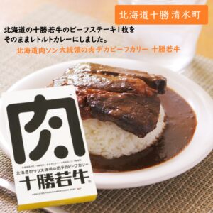 その他十勝若牛のカレー3品も並ぶ。中でも十勝若牛ステーキが1枚まるごと入ったカレーは、