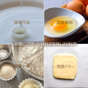 使用素材にもこだわり抜き、国産小麦・国産発酵バターを中心に使用。バター風味たっぷりのブリオッシュ生地を採用。水を使用しない無水製法でミルクとバターの芳醇な風味のしっとりとした食感に仕上げています。