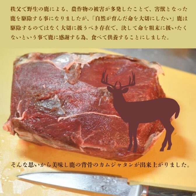 山をかけまわる運動量から筋肉の発達が著しく、高タンパクで低脂肪な肉質に特徴のある鹿肉。