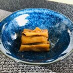 ■醤油漬栄養成分表示(100g当たり) エネルギー66kcal、タンパク質1.5g、脂質0.2g、炭水化物15.2g、食塩相当量2.4g(この表示は目安です。)