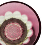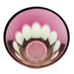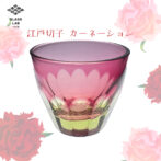 ピンク地に淡いグリーンの2重構造の被せ硝子を使用し、優雅なカーネーションが広がる至高の一品です。江戸切子でよく使われる「色被せ硝子」の特注品を使用しています。