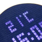 深い藍色に染まった阿波しじら織布に白色LEDデジタル表示時刻が浮かび上がる置時計。